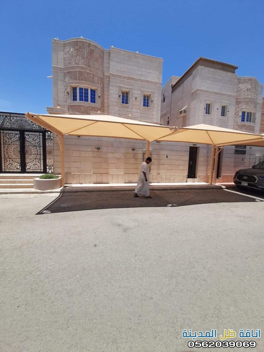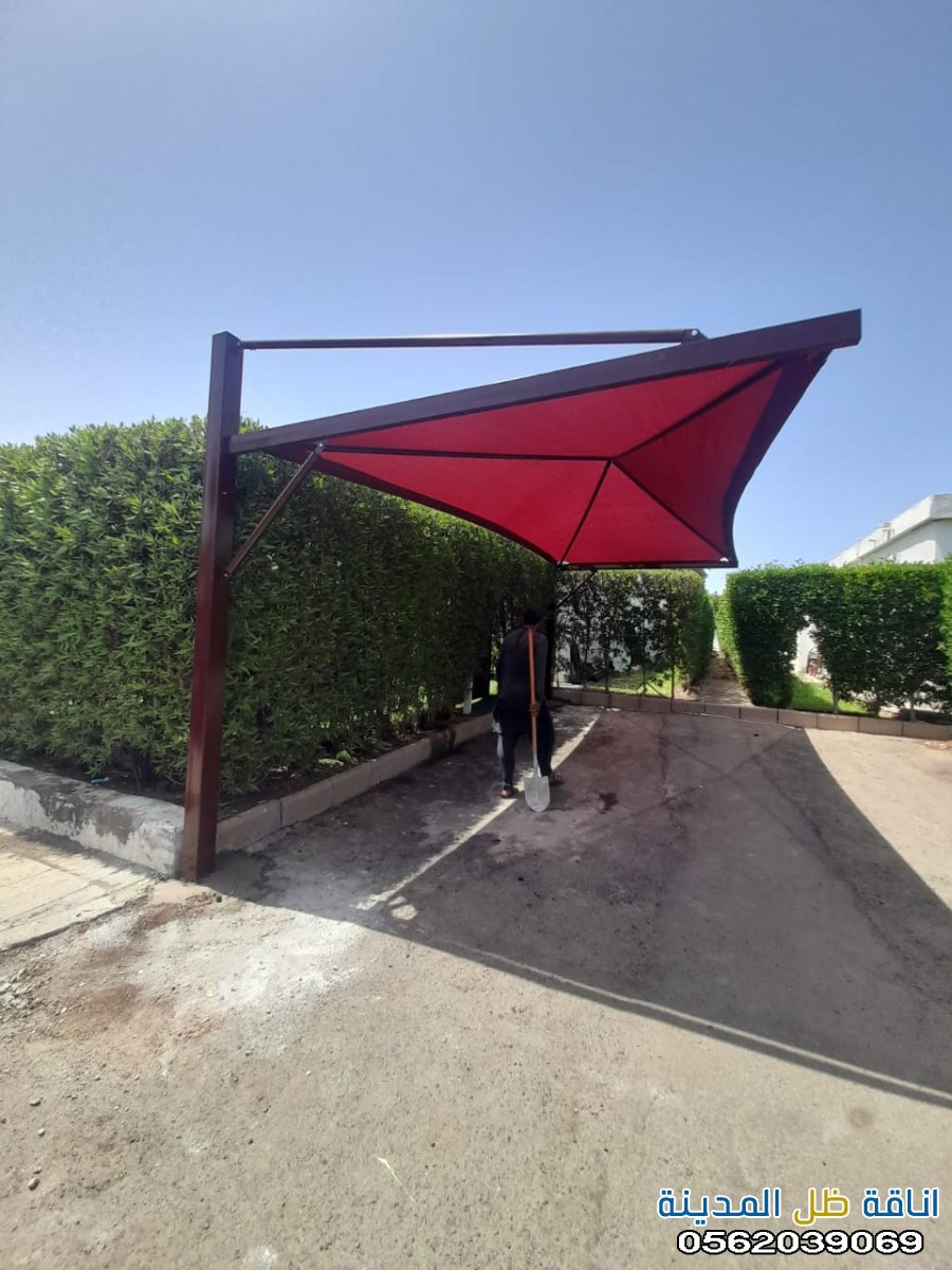 - المواقف: تستخدم المظلات لتغطية المواقف وحماية السيارات من أشعة الشمس والأمطار.