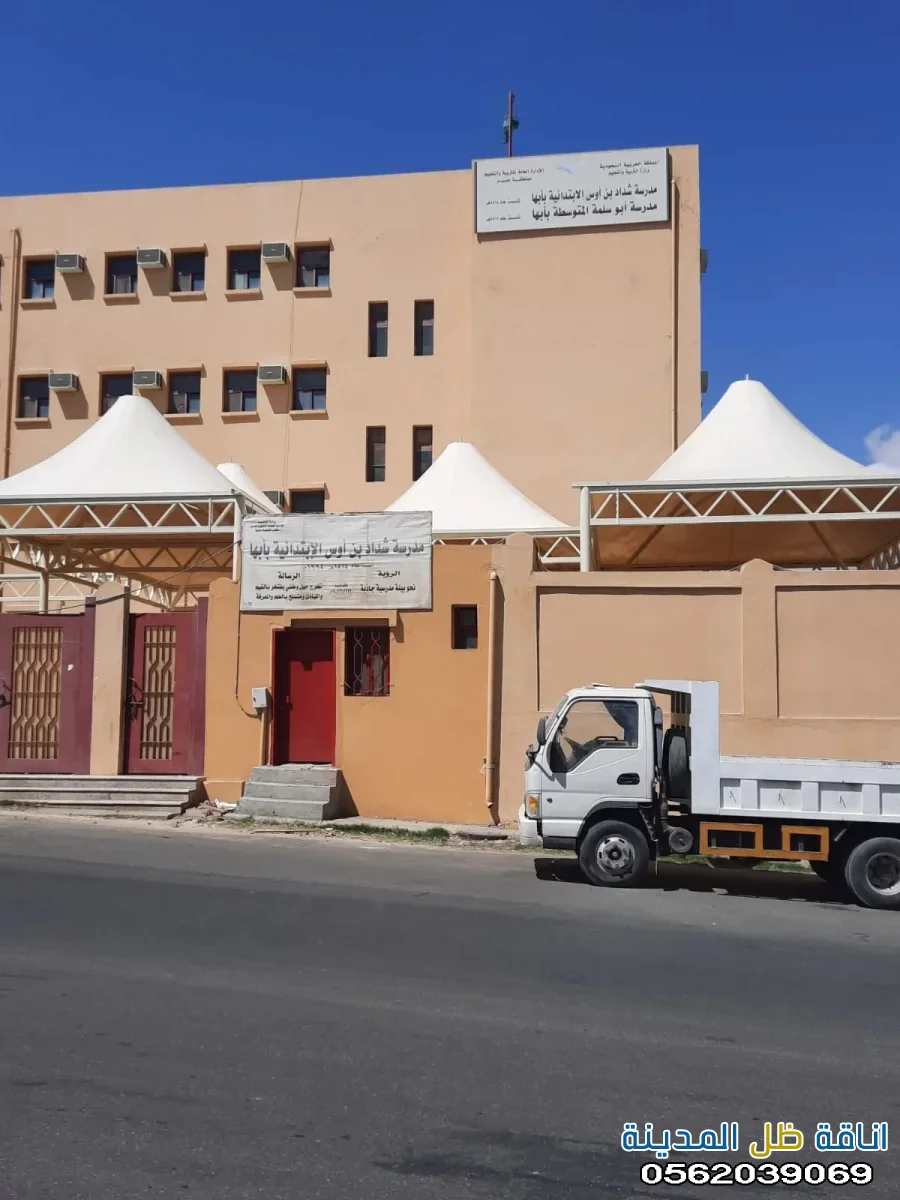 - مظلات الممرات والمداخل: تضفي لمسة جمالية على المداخل والممرات وتوفر حماية من الشمس والمطر أثناء الدخول والخروج من المبنى.