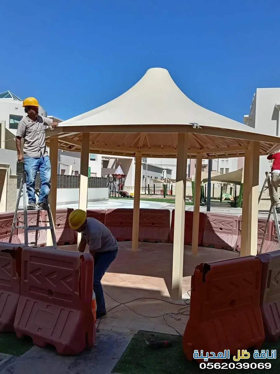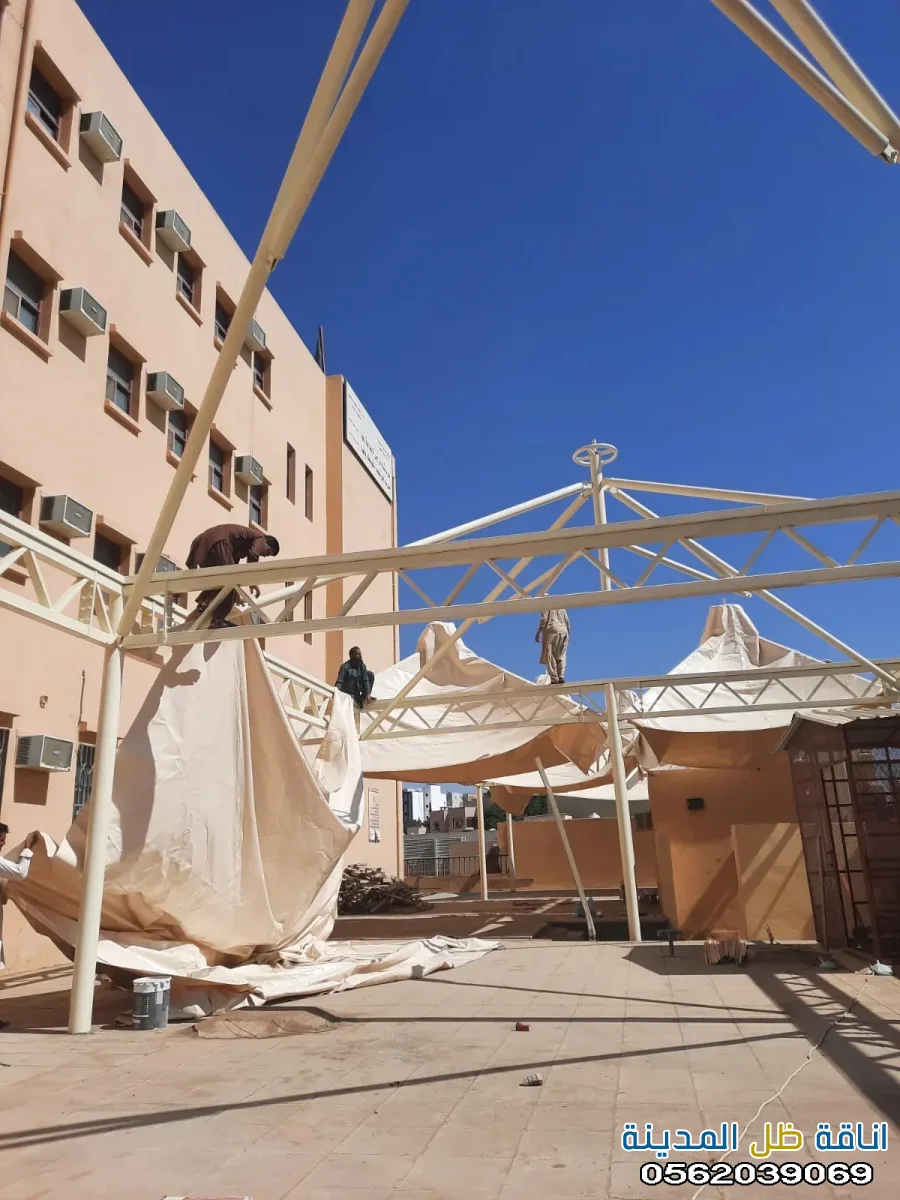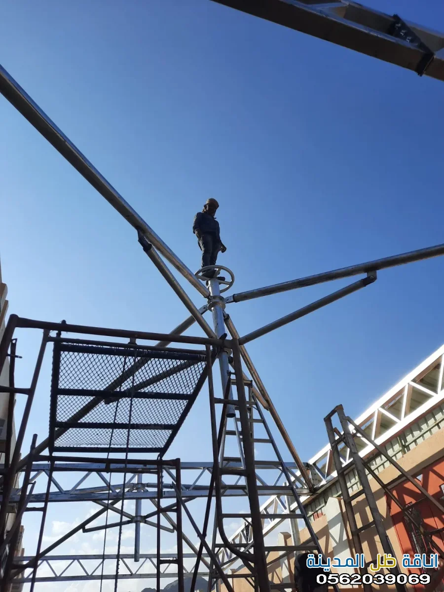 - مظلات متحركة: توفر مرونة في التحكم بكمية الظل المطلوبة، حيث يمكن فتحها وإغلاقها حسب الحاجة.