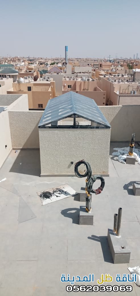 المظلات القوسية والمخروطية: تبرز كخيار مثالي للمشاريع الكبيرة والمسابح، بفضل قدرتها على تصريف المياه بفعالية وجماليتها التي تكسر الخطوط التقليدية.