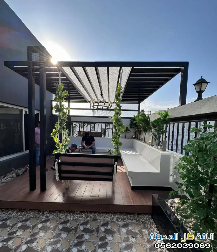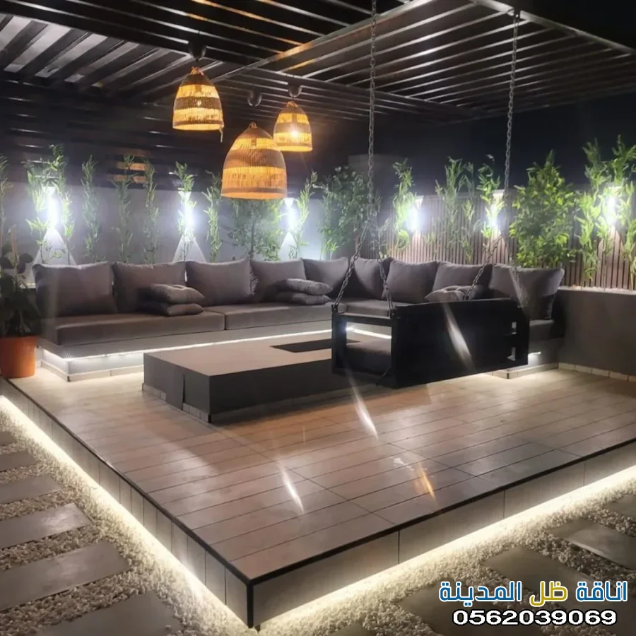 - التشطيبات الراقية: الانتباه للتفاصيل الصغيرة مثل إخفاء الكابلات الكهربائية، التنسيق اللوني بين المظلة والجلسة، وجودة اللحامات أو المسامير المستخدمة.