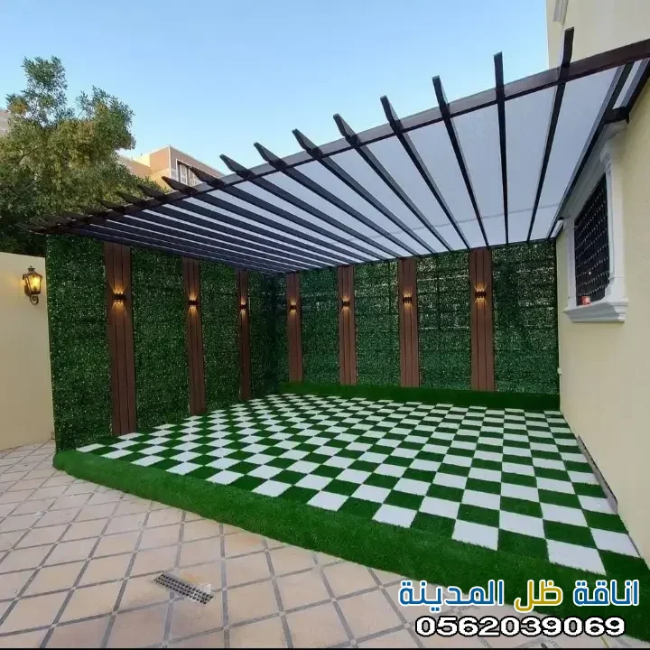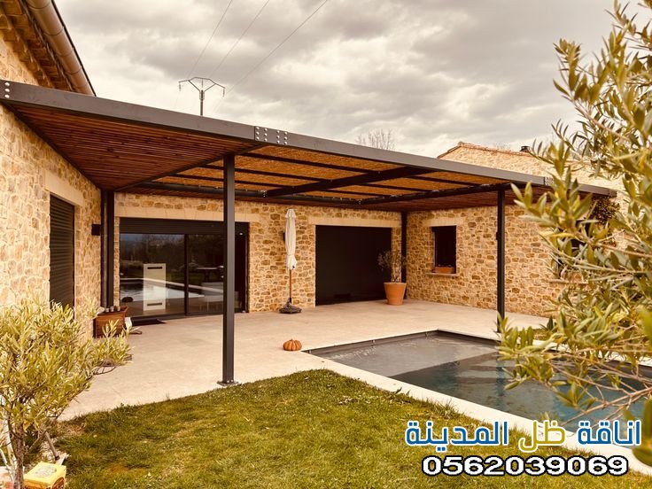 - مظلات الألمنيوم والهياكل المعدنية: تتميز بالقوة، خفة الوزن، وقلة الحاجة للصيانة، وتوفر تصاميم عصرية ومبتكرة.