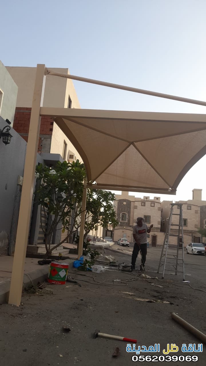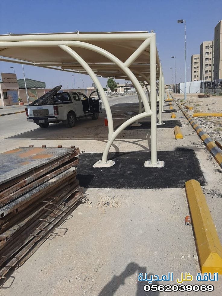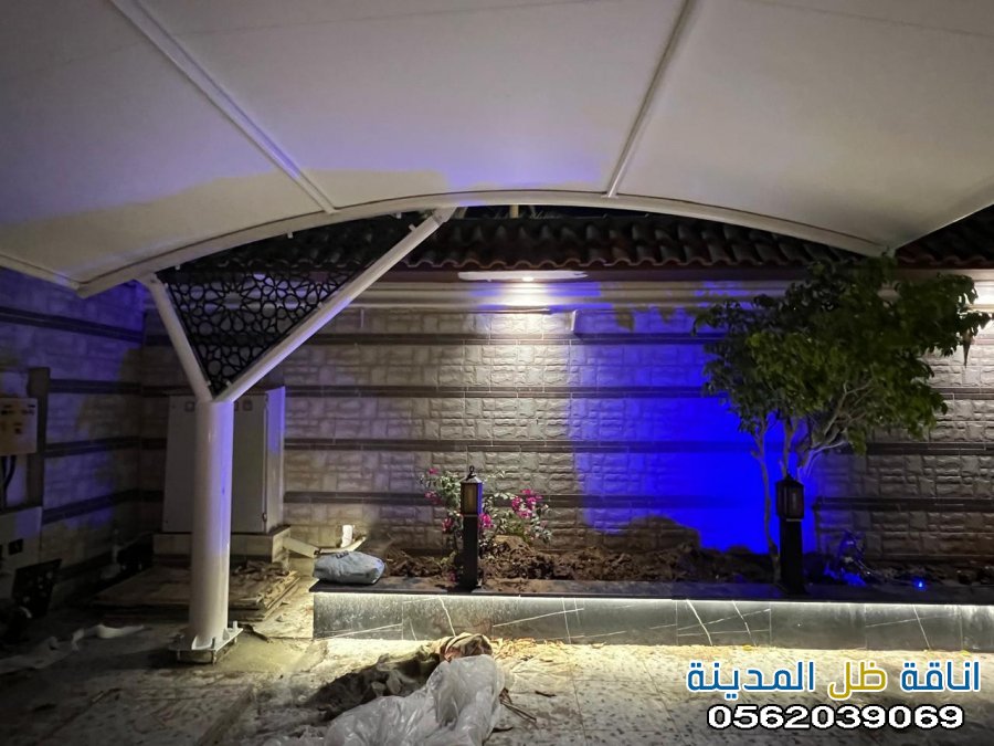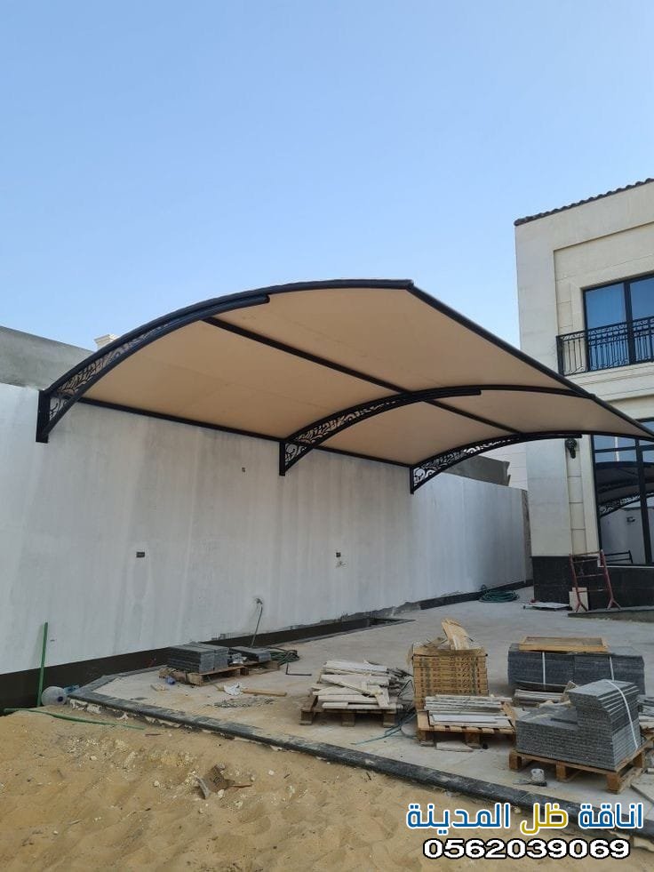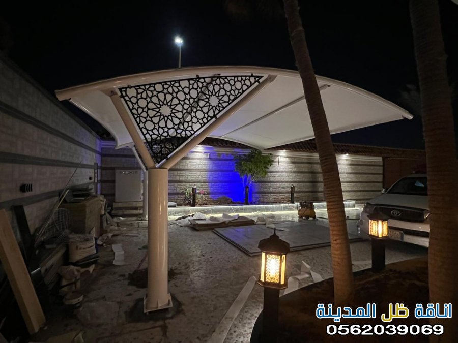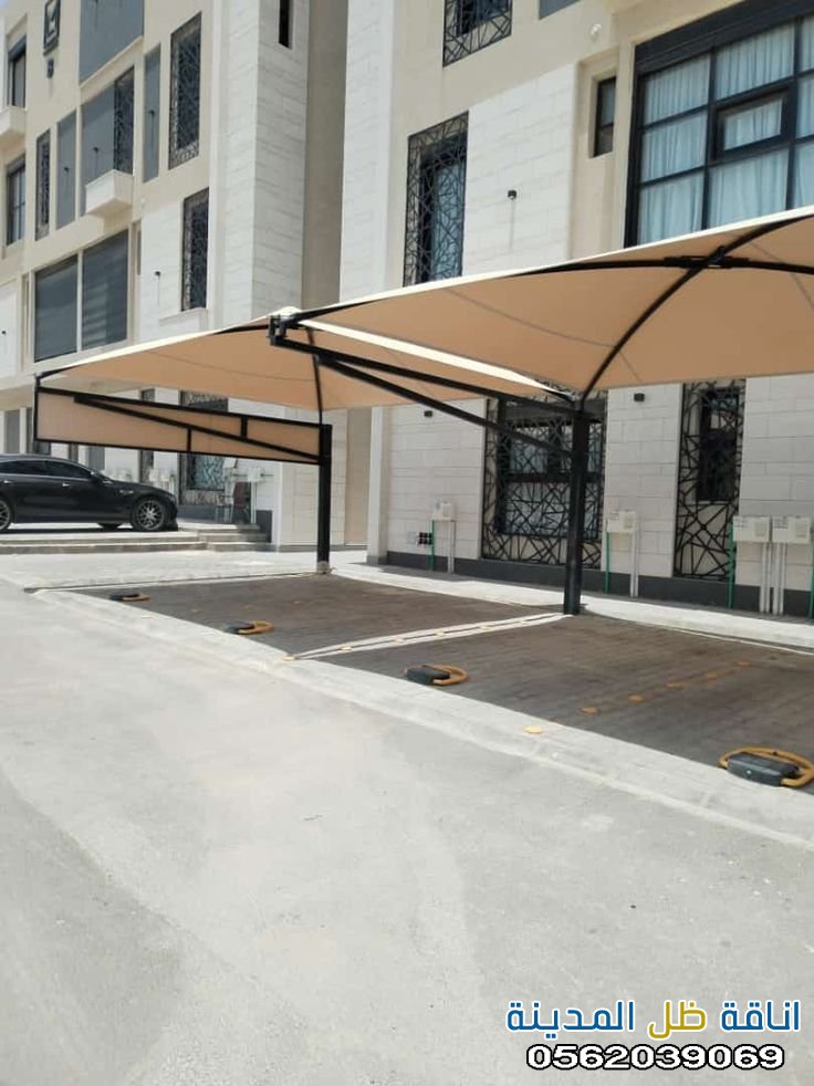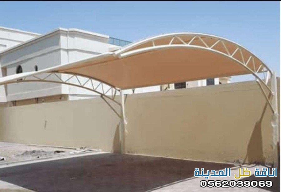 الميزة: هي قمة الحداثة في التصميم، وتعتمد على شد القماش المتين (مثل PVC أو HDPE) بين نقاط تثبيت على ارتفاعات مختلفة لإنشاء أشكال منحنية ثلاثية الأبعاد لافتة للنظر، ما يمنحها مرونة وشكلاً فنياً.